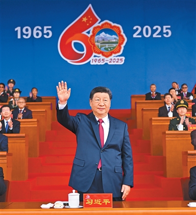 8月21日上午,西藏各族各界干部群眾約2萬人歡聚拉薩市布達拉宮廣場,熱烈慶祝西藏自治區成立60周年。中共中央總書記、國家主席、中央軍委主席習近平出席慶祝大會。王滬寧、蔡奇出席大會。