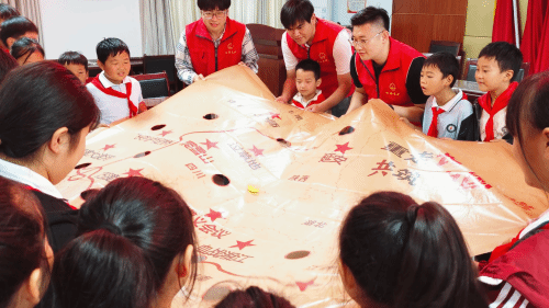 活動還設置了沉浸式互動環節。在重走長征路游戲中,孩子們分組協作,齊心運送“長征火種”,在一次次的嘗試中體會百折不撓的意志品質;在我們一起來閱兵環節中,孩子們在青年志愿者的協助下開啟“國防武器盲盒”,將組裝完成的模型整齊排列、模擬閱兵,深刻理解“落后就要挨打”的歷史教訓與“強國必須強軍”的時代意義。簡單的游戲形式,承載的是對紅色基因的生動傳承。