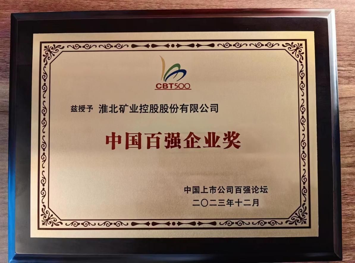 淮北礦業榮獲中國百強企業獎榮譽稱號